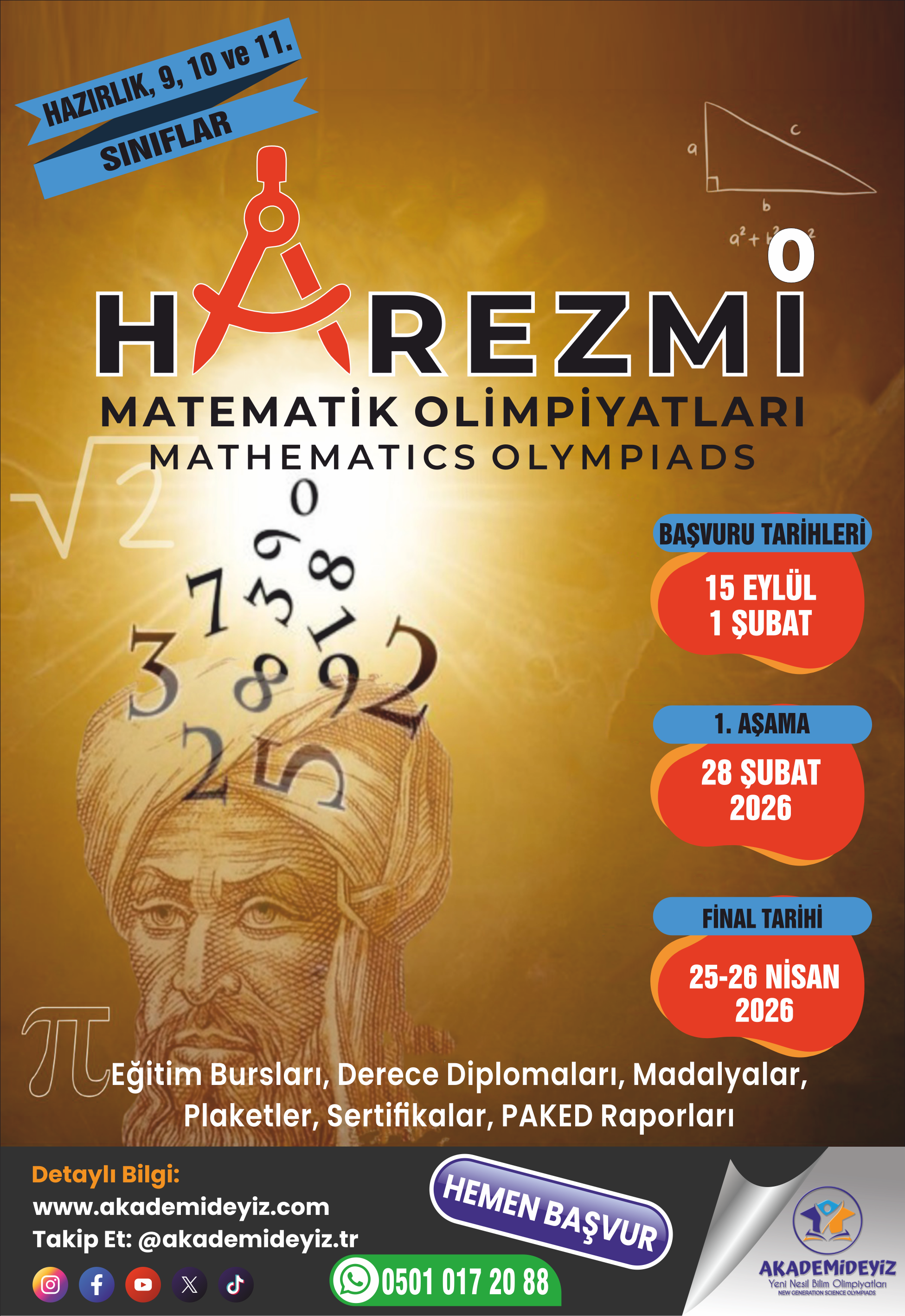 HAREZMİ MATEMATİK OLİMPİYATLARI, öğrencilerimizin problem çözme, mantık yürütme ve analatik düşünme becerilerini ölçmek için düzenlenen bir yarışmadır. HAREZMİ MATEMATİK OLİMPİYATLARI matematik, mantık bulmacaları ve bilgisayar bilimi gibi alanlarda zekayı ölçmeyi amaçlar. Bu yarışmalar, katılımcıların zihinsel yeteneklerini geliştirirken aynı zamanda kendilerini test etmelerine olanak tanır. İLKOKUL 2,3 VE 4. SINIFLAR, ORTAOKUL 5, 6 VE 7. SINIFLAR, HAZIRLIK, 9, 10 VE 11.SINIFLARDA OKUYAN ÖĞRENCİLERİMİZ YARIŞMALARA KATILABİLİR. Özel okullar, devlet okulları ve dershanelerde eğitim gören öğrenciler yarışmalara katılabilir.